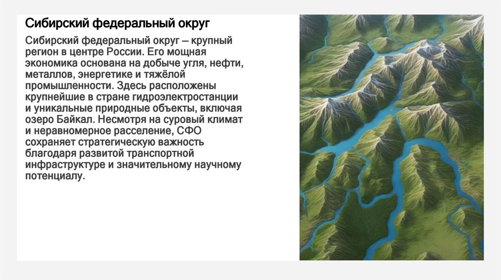 Сибирский федеральный округ — крупныйрегион в центре России. Его мощная