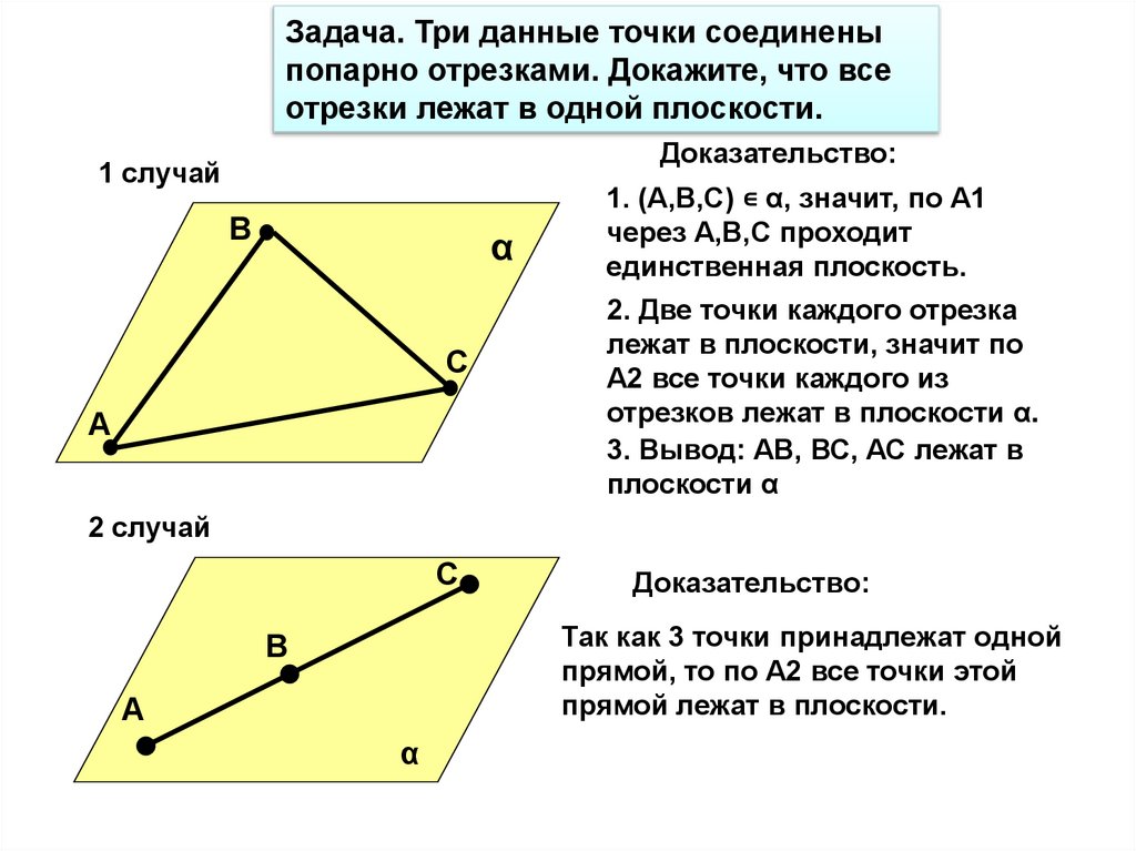 Задача. Три данные точки соединеныпопарно отрезками. Докажите, что все