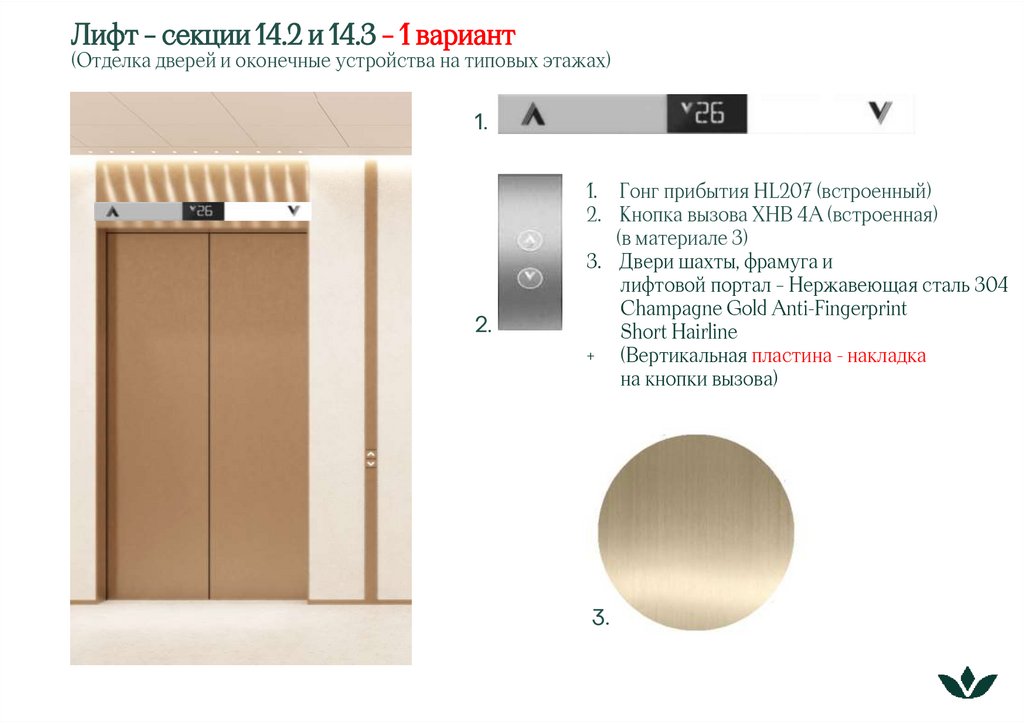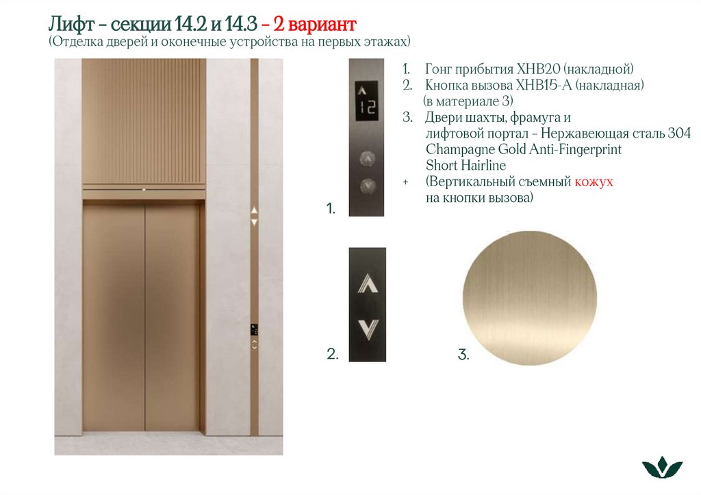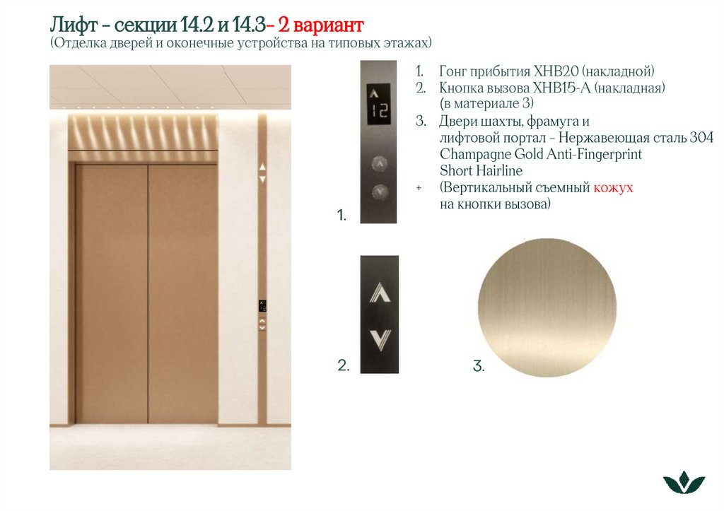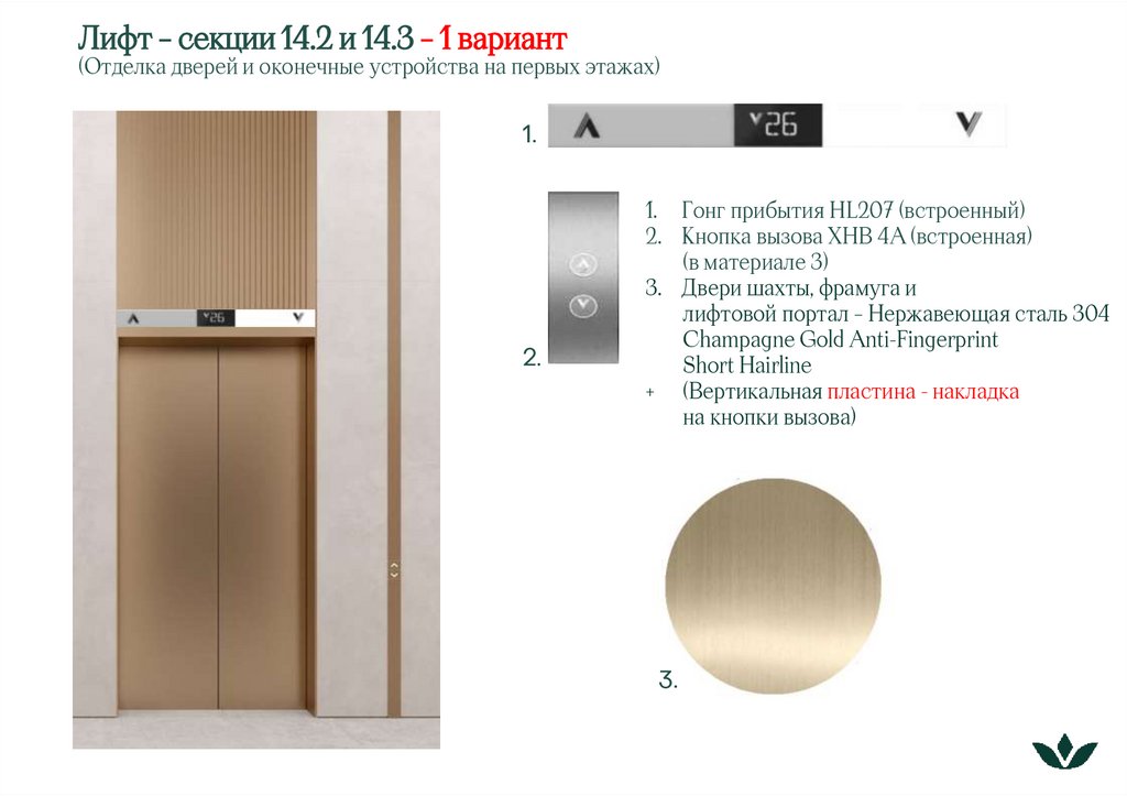 Лифт – секции 14.2 и 14.3 – 1 вариант(Отделка дверей и оконечные устройства на первых этажах)