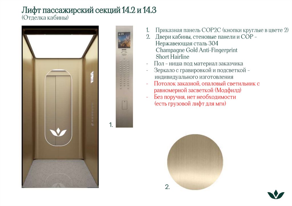 1. Лифтовые кабины и оконечные устройства для жк Bellini