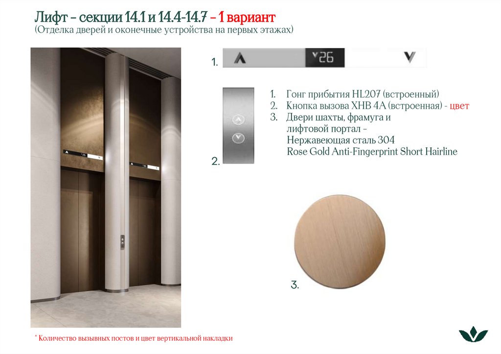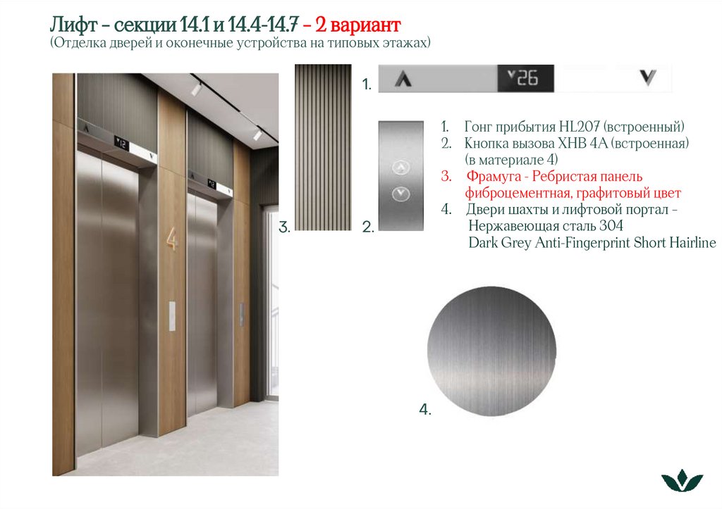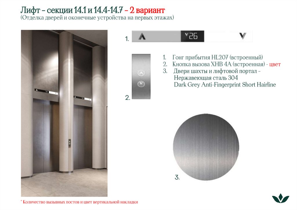 Лифт – секции 14.1 и 14.4-14.7 – 2 вариант(Отделка дверей и оконечные устройства на первых этажах)