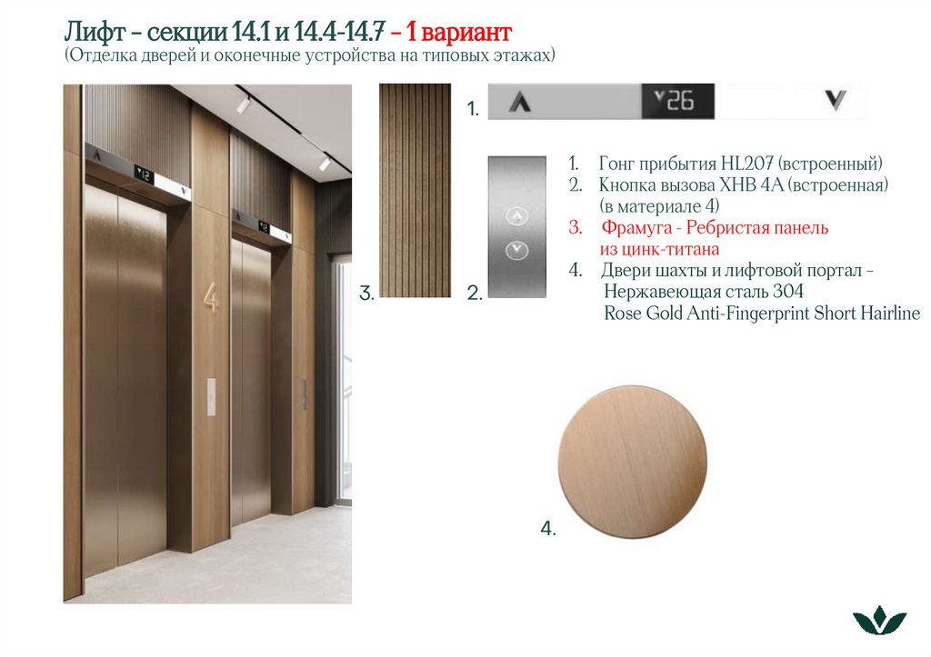 Лифт – секции 14.1 и 14.4-14.7 – 2 вариант(Отделка дверей и оконечные устройства на типовых этажах)