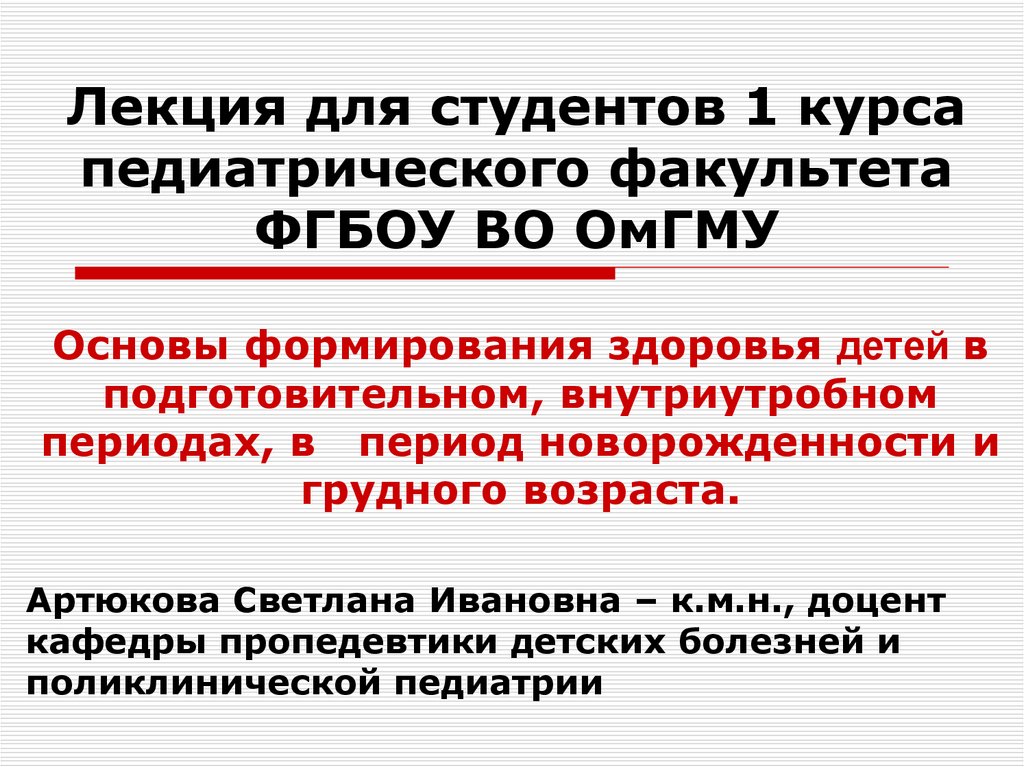 1. Лекция для студентов 1 курса педиатрического факультета ФГБОУ ВО ОмГМУ