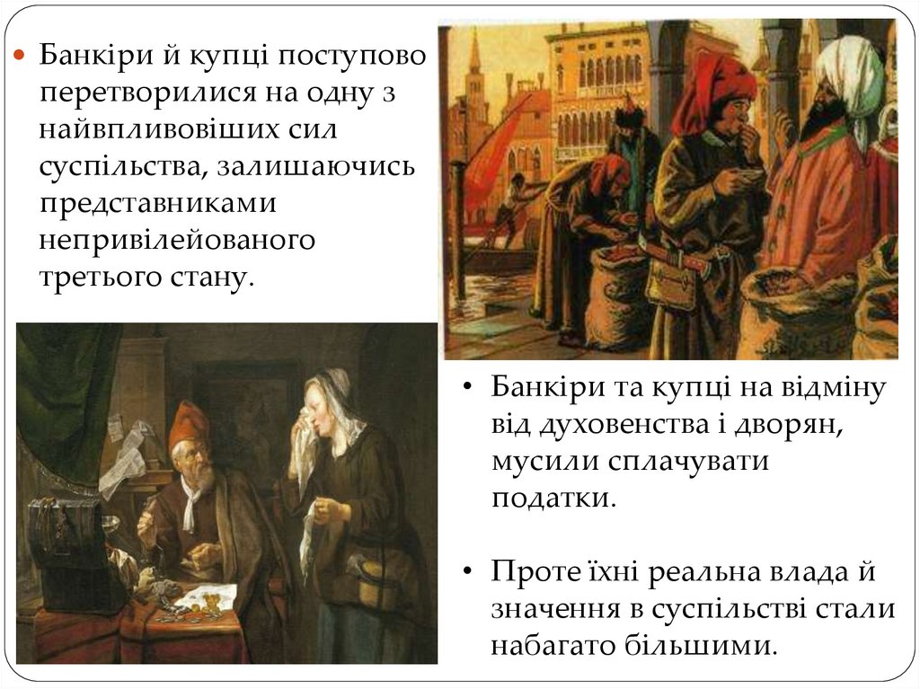 • Банкіри та купці на відміну