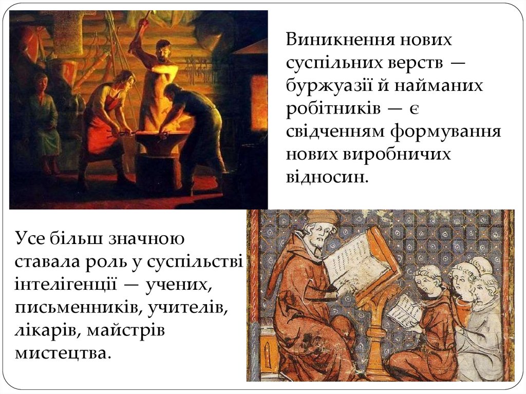 Виникнення новихсуспільних верств —