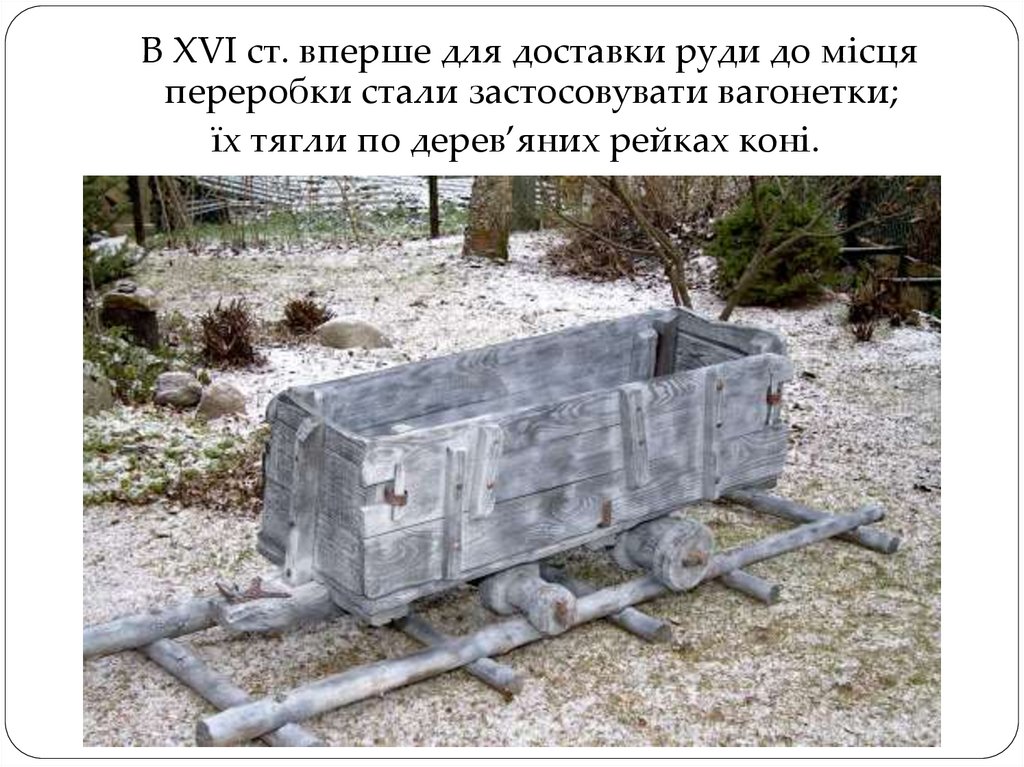 В ХVI ст. вперше для доставки руди до місцяпереробки стали застосовувати вагонетки;