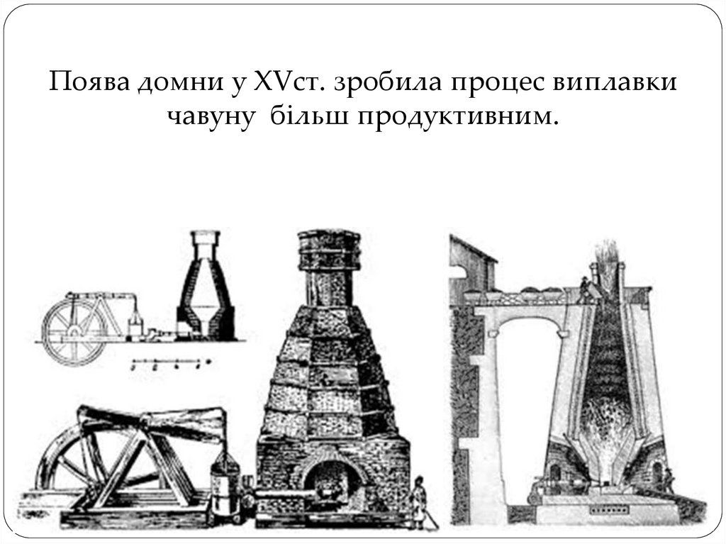 Поява домни у ХVст. зробила процес виплавкичавуну більш продуктивним.