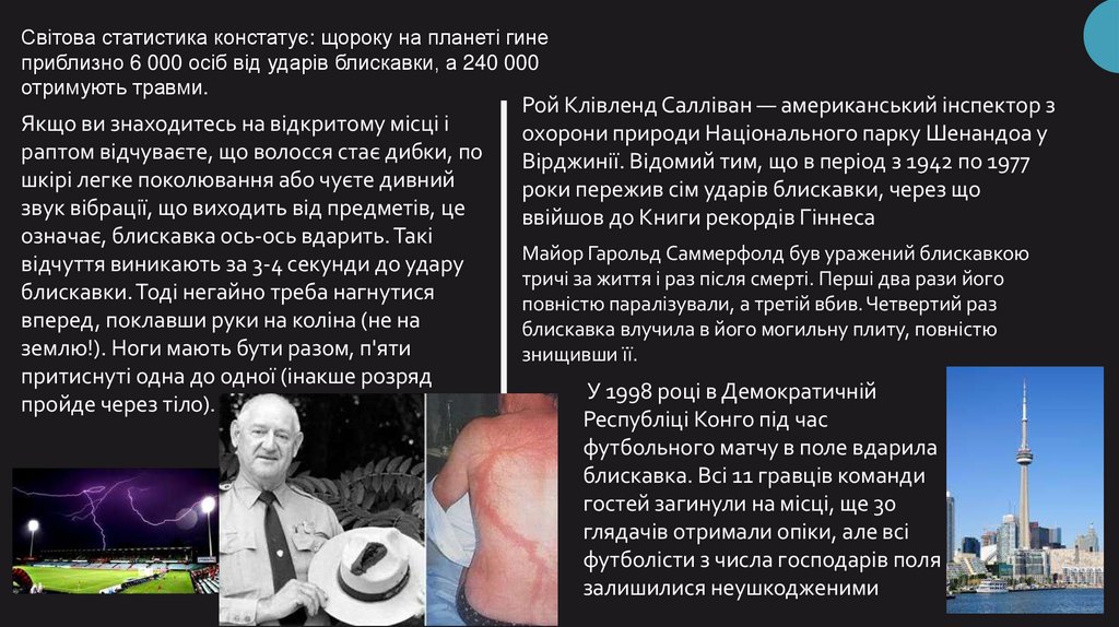 Світова статистика констатує: щороку на планеті гинеприблизно 6 000 осіб від ударів блискавки, а 240 000