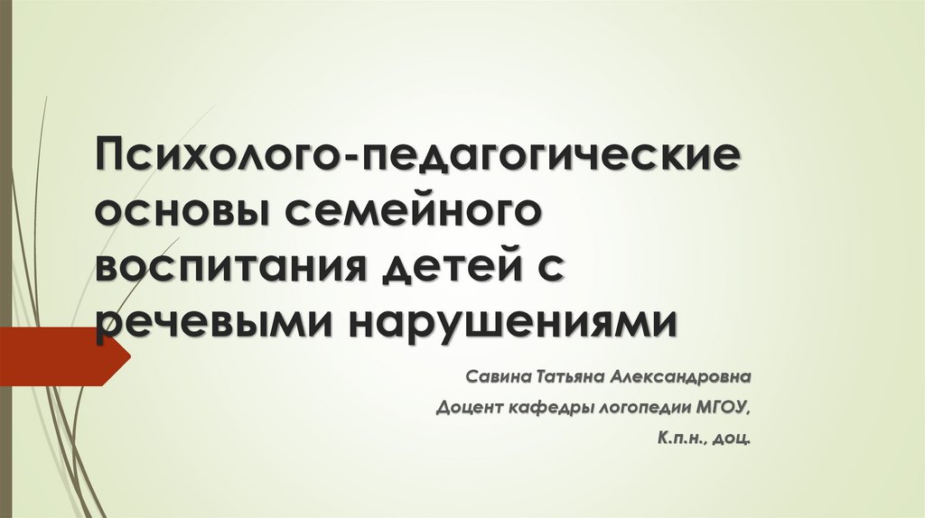Тема 2. Психолого-педагогические основы семейного воспитания детей с речевыми нарушениями