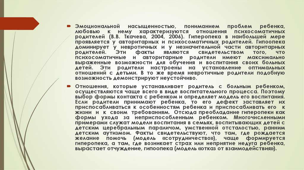родителей (В.В. Ткачева, 2004, 2006). Гиперопека в наибольшей мере