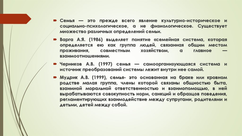 Семья — это прежде всего явление культурно-историческое исоциально-психологическое, а не физиологическое. Существует