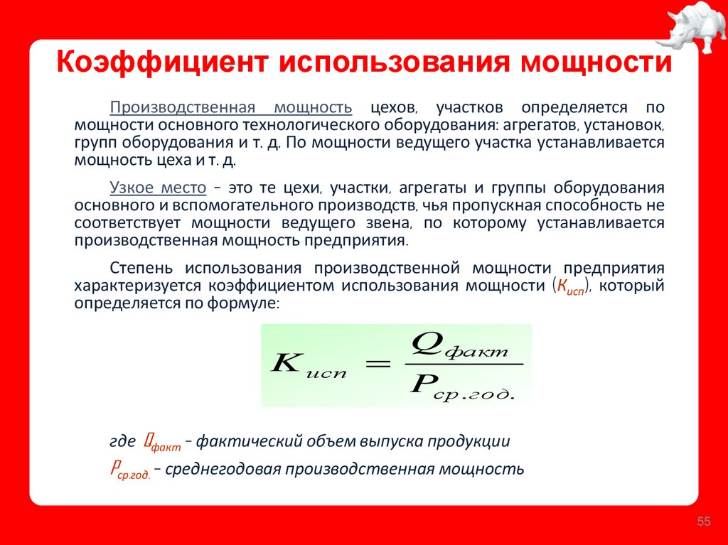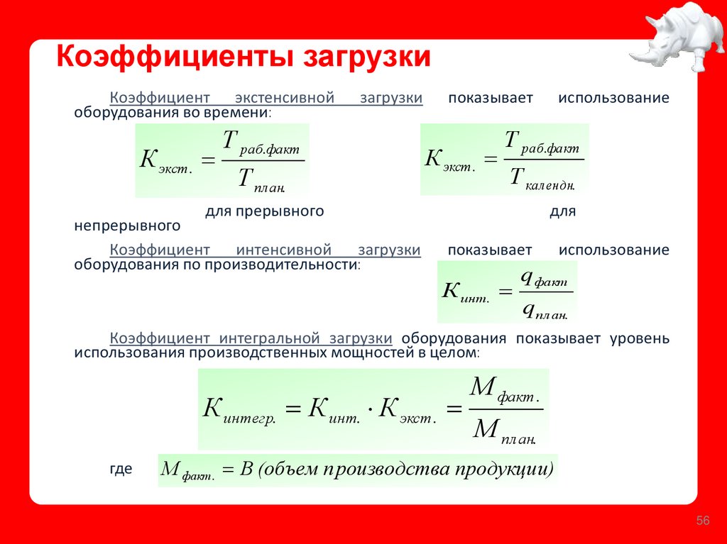 Коэффициент интегральной загрузки оборудования показывает уровень
