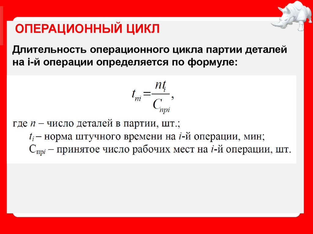 ОПЕРАЦИОННЫЙ ЦИКЛДлительность операционного цикла партии деталей