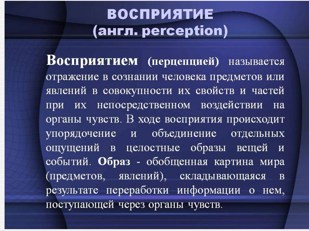 ВОСПРИЯТИЕ – познавательныйпсихический процесс отражения в