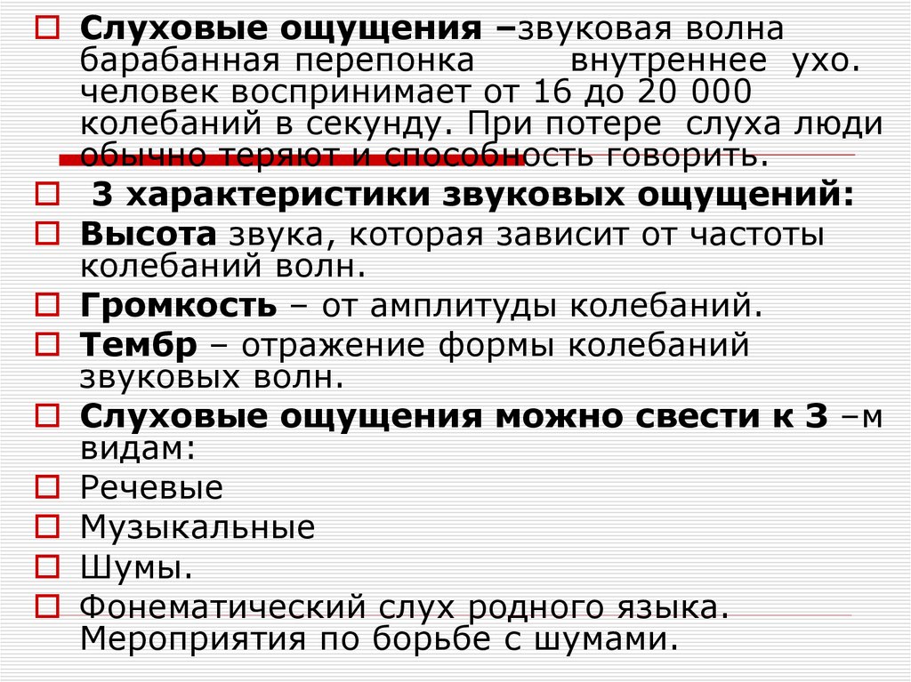 Слуховые ощущения –звуковая волнабарабанная перепонка