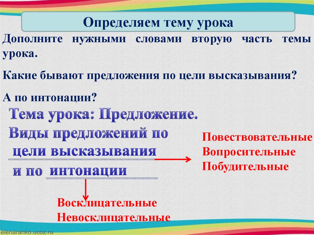Предложение. Виды предложений по цели высказывания и по интонации