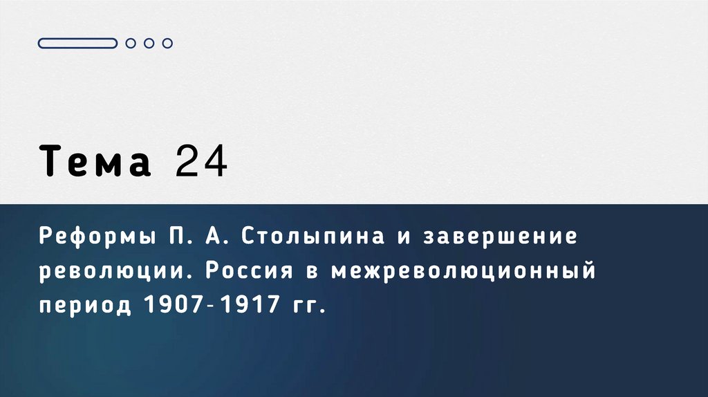 Teма 24. Реформы П. А. Столыпина и завершение революции. Россия в межреволюционный период 1907-191 гг