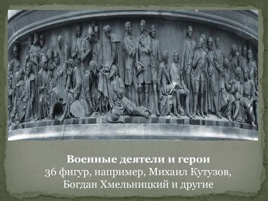 Военные деятели и герои36 фигур, например, Михаил Кутузов,