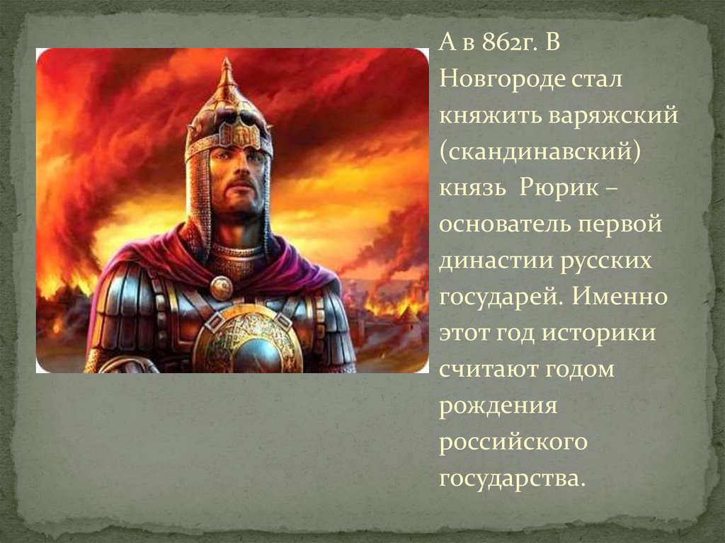 Рюрик — основание государстваРоссийского в 862 году.