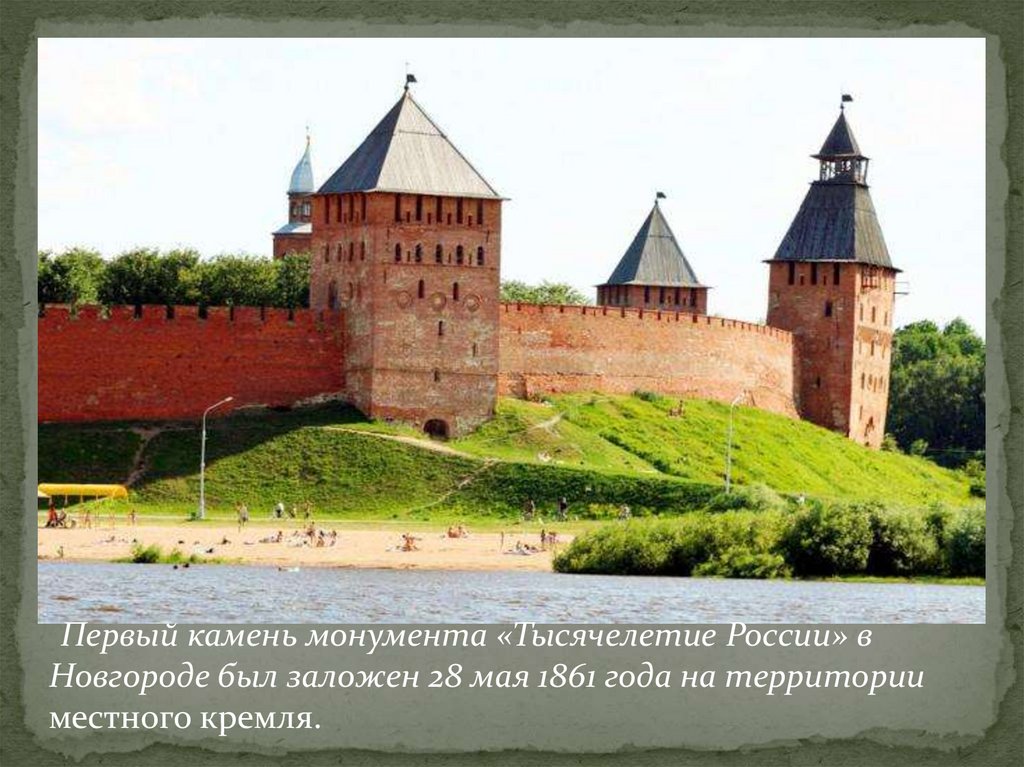 Первый камень монумента «Тысячелетие России» вНовгороде был заложен 28 мая 1861 года на территории