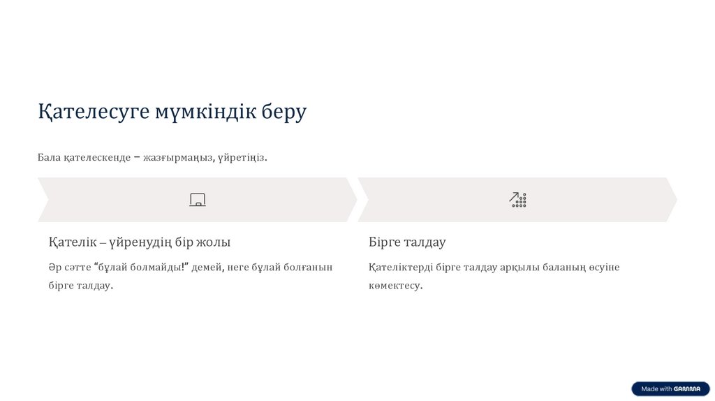 Қателесуге мүмкіндік беруБала қателескенде – жазғырмаңыз, үйретіңіз.