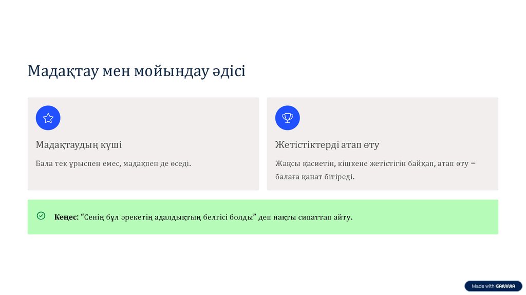 Кеңес: “Сенің бұл әрекетің адалдықтың белгісі болды” деп нақты сипаттап айту.