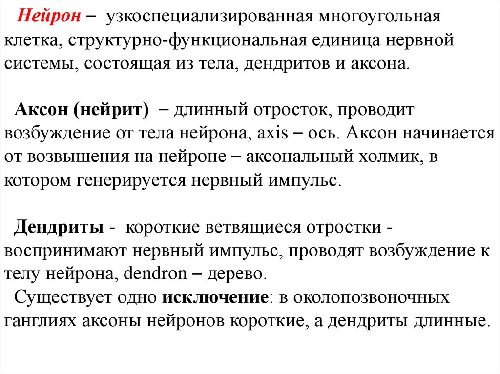 Нейрон – узкоспециализированная многоугольнаяклетка, структурно-функциональная единица нервной