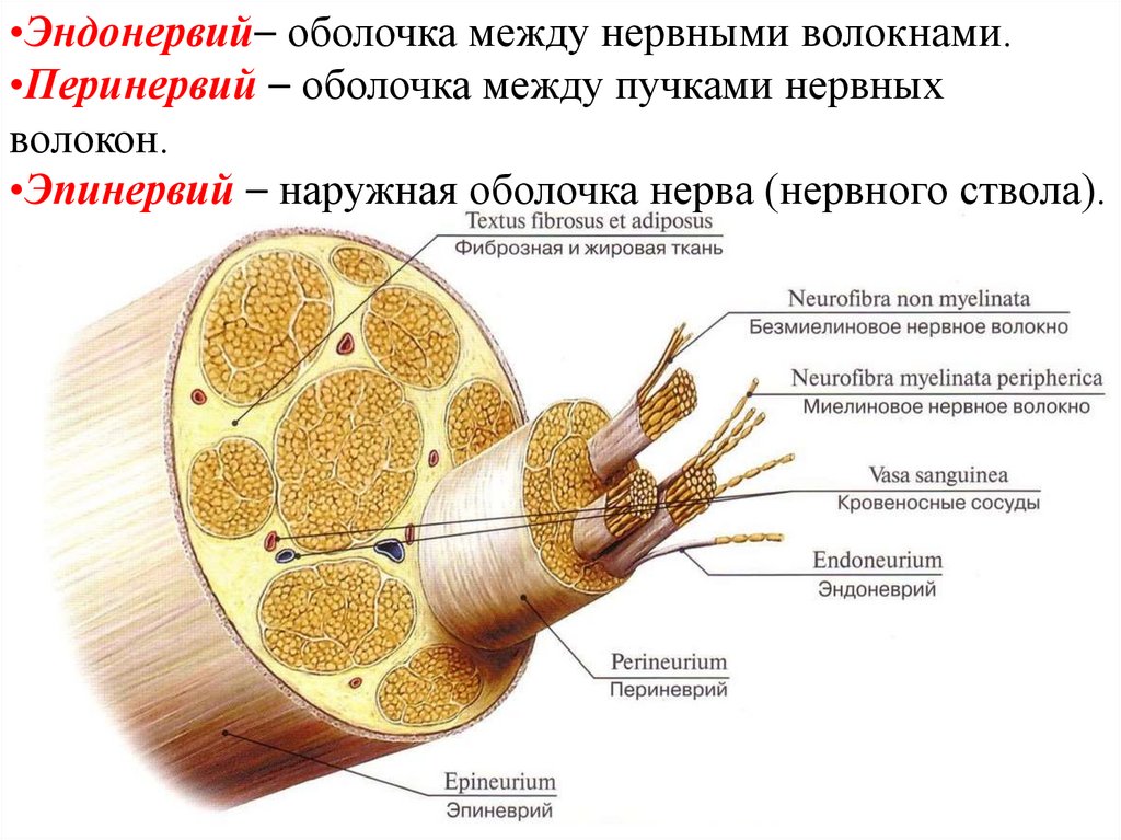 •Эндонервий– оболочка между нервными волокнами.•Перинервий – оболочка между пучками нервных