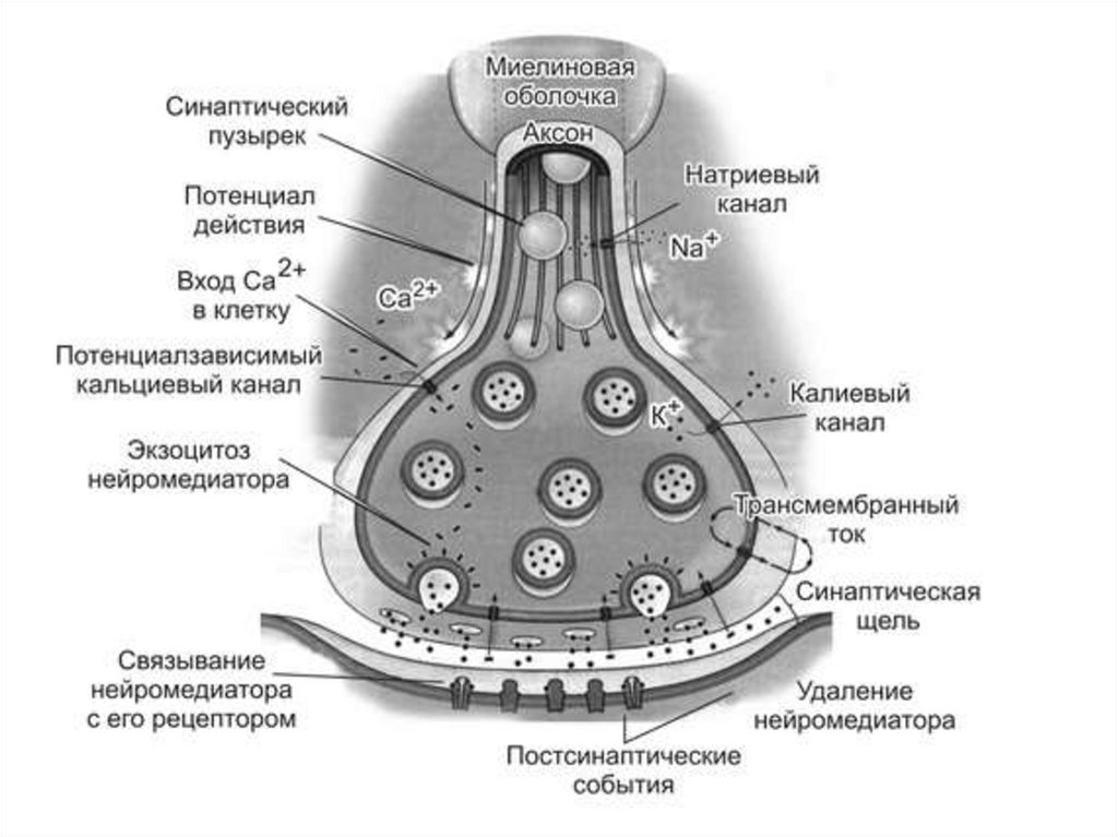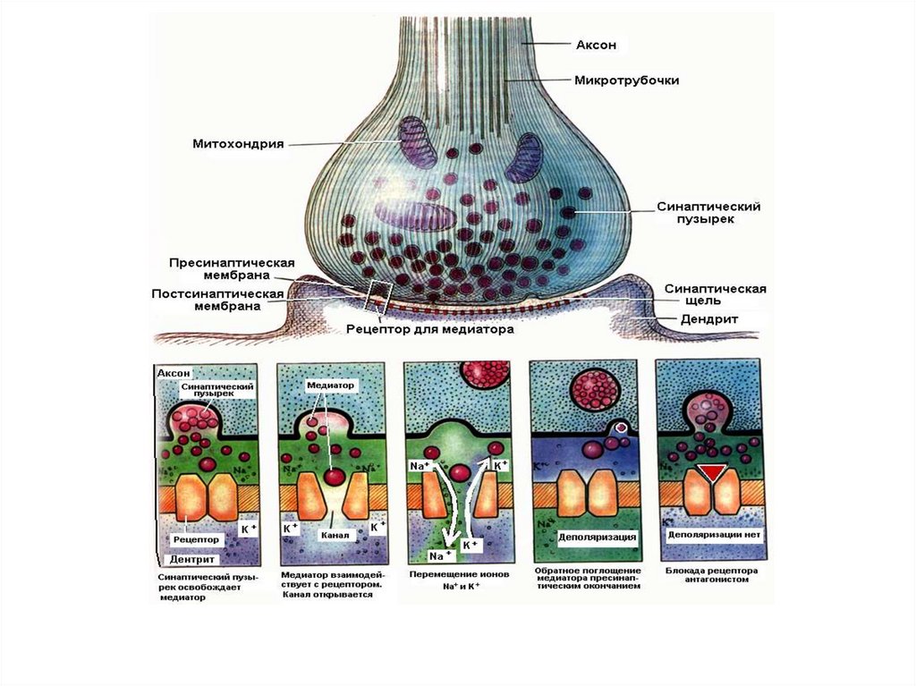 возбуждение от тела нейрона, axis – ось. Аксон начинается