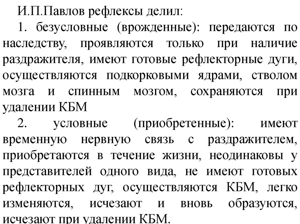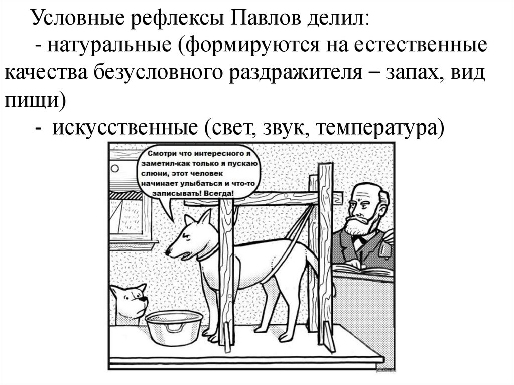 Условные рефлексы Павлов делил:- натуральные (формируются на естественные
