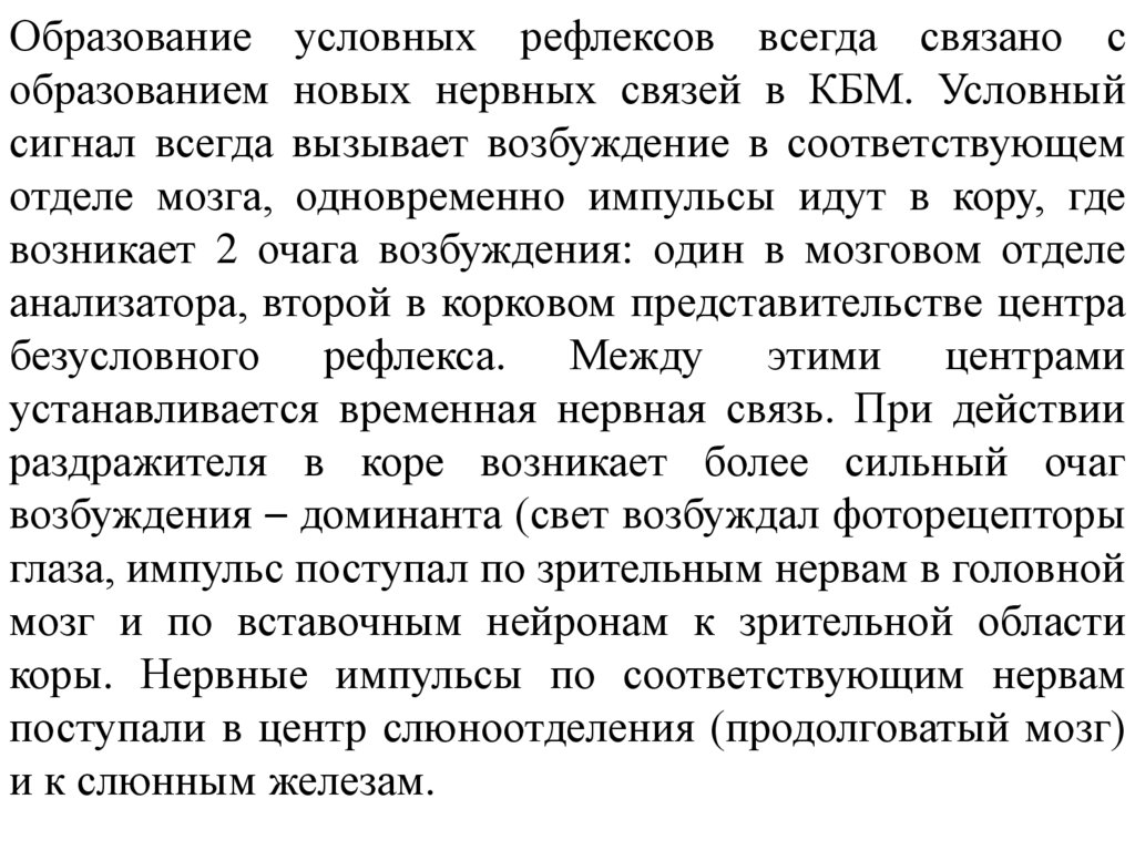 Образование условных рефлексов всегда связано собразованием новых нервных связей в КБМ. Условный