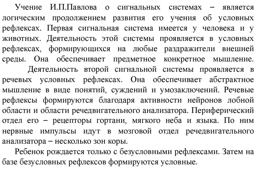 Учение И.П.Павлова о сигнальных системах – являетсялогическим продолжением развития его учения об условных