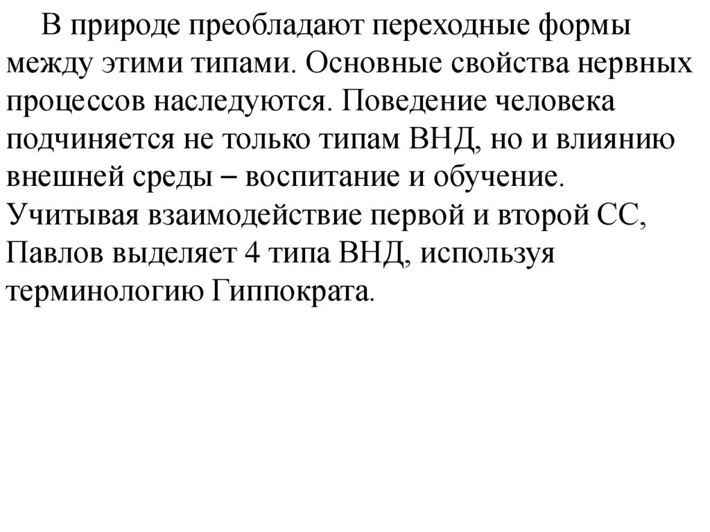 В природе преобладают переходные формымежду этими типами. Основные свойства нервных