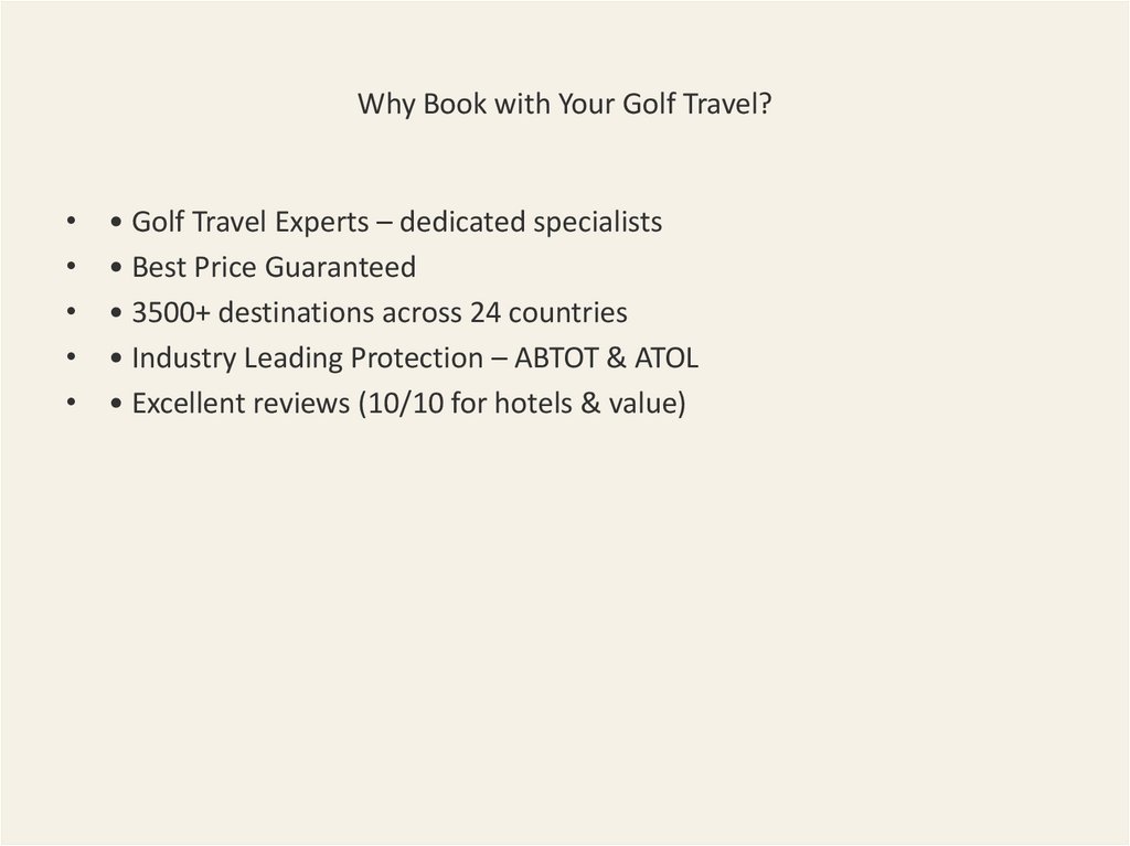 Why Book with Your Golf Travel?• Golf Travel Experts – dedicated specialists
