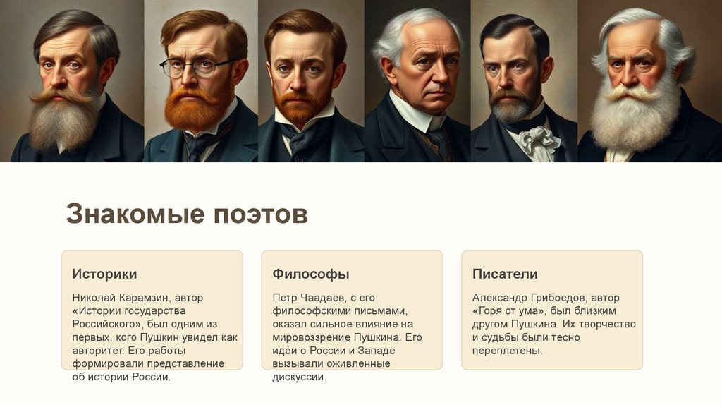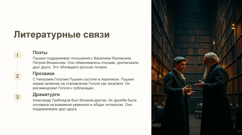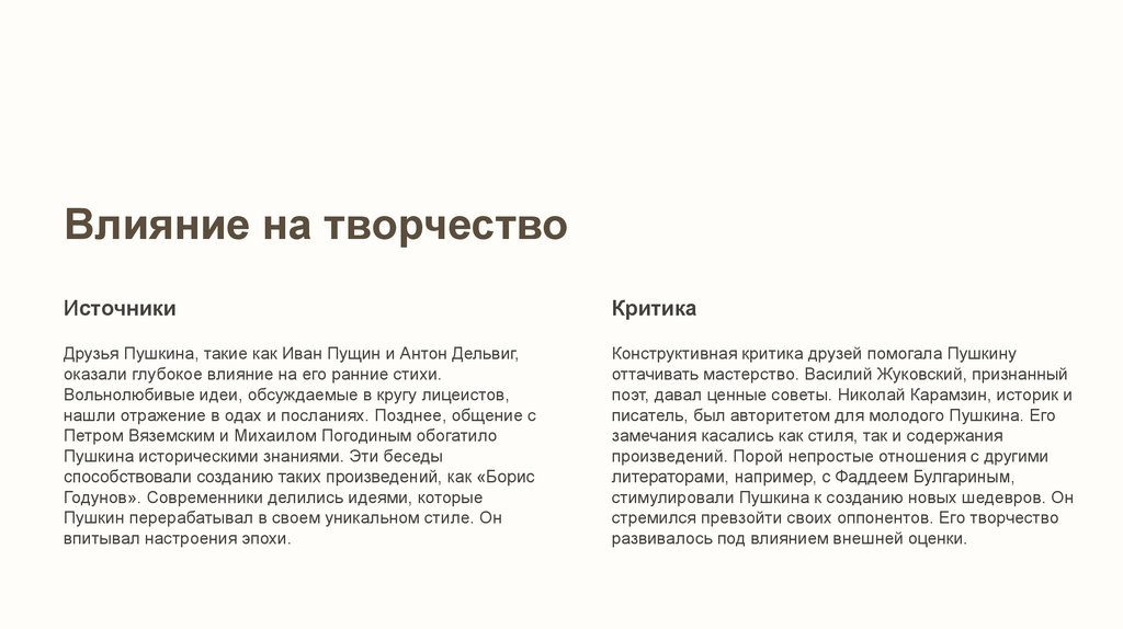 коллеги, знакомые. Их влияние на Пушкина было многогранным. Они