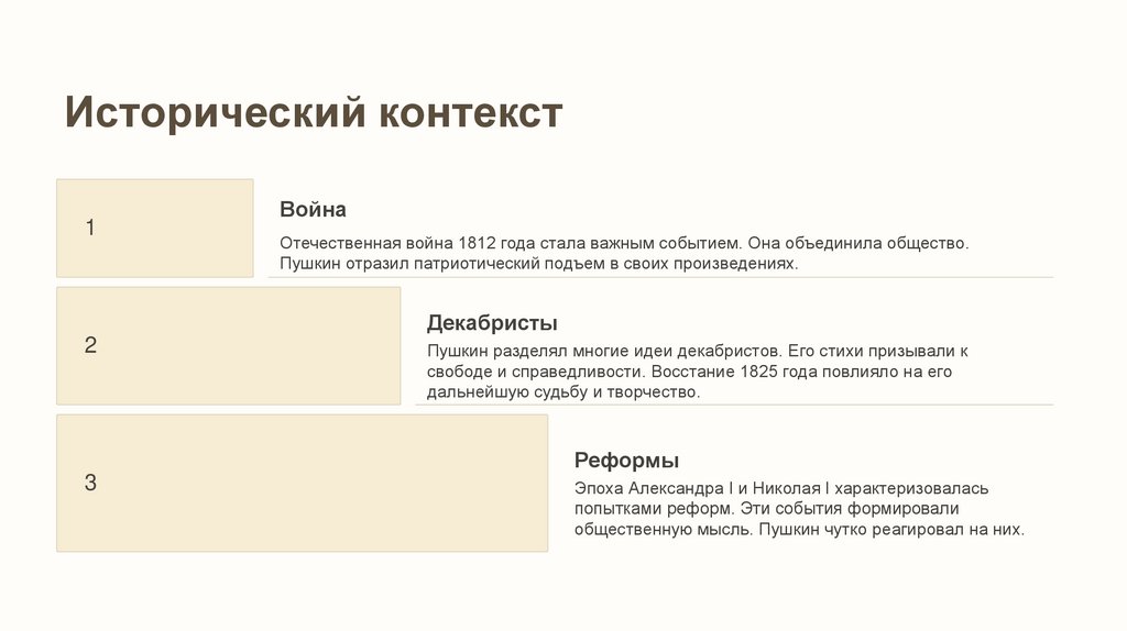 Пушкин разделял многие идеи декабристов. Его стихи призывали к