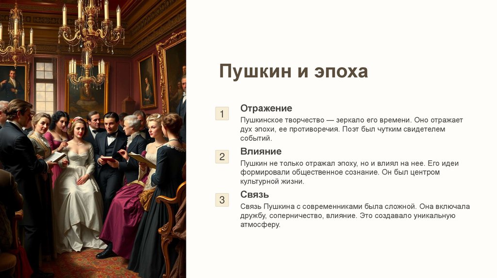 Пушкин не только отражал эпоху, но и влиял на нее. Его идеи