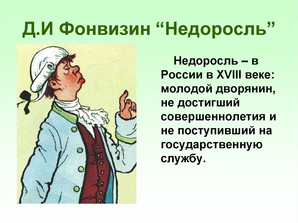 Д.И Фонвизин “Недоросль”Недоросль – в