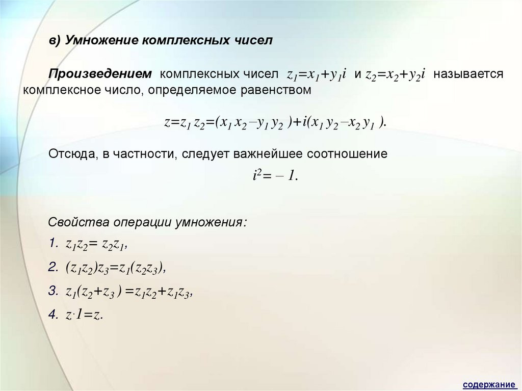 11. Сформулируйте правило умножения комплексных чисел, записанных