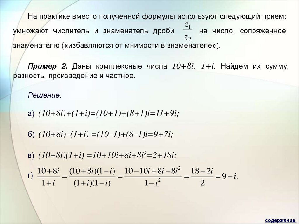 в) (10+8i)(1+i) =10+10i+8i+8i2=2+18i;