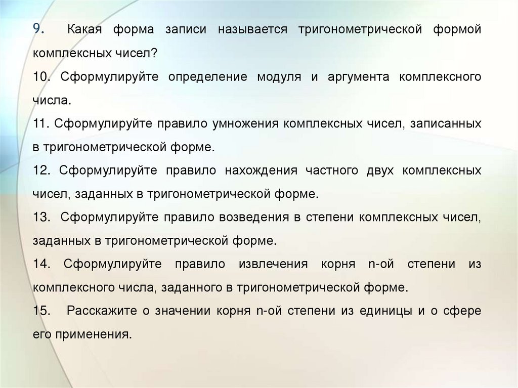 13. Сформулируйте правило возведения в степени комплексных чисел,