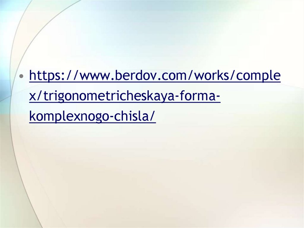 • https://www.berdov.com/works/complex/trigonometricheskaya-formakomplexnogo-chisla/