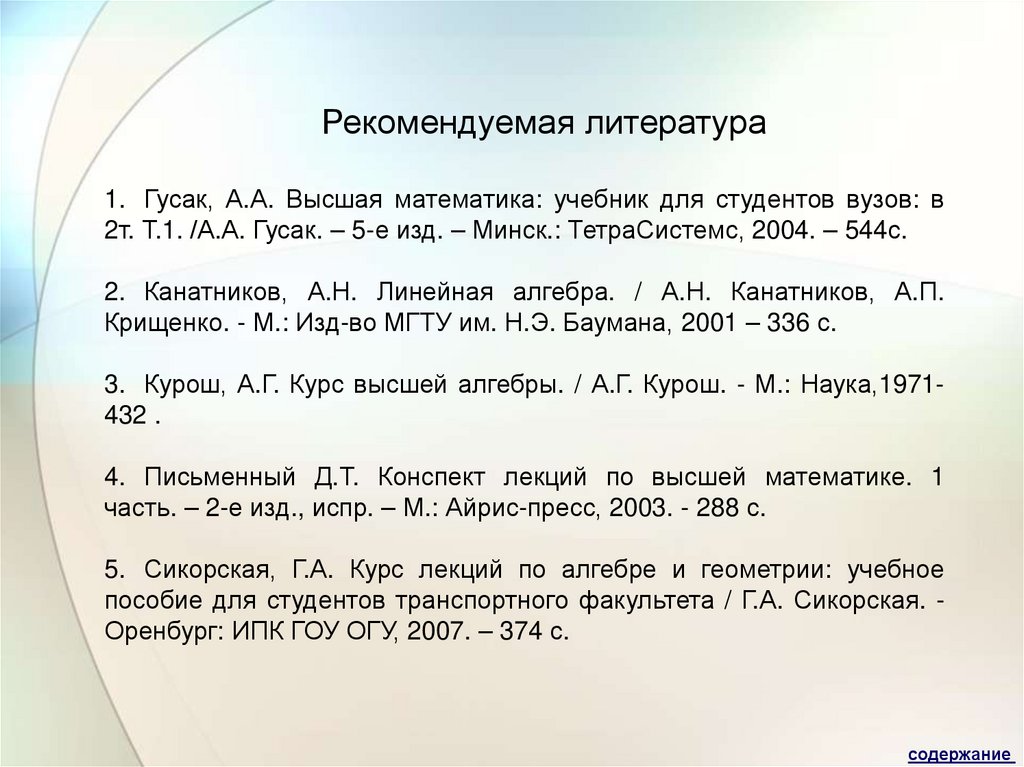 Рекомендуемая литература1. Гусак, А.А. Высшая математика: учебник для студентов вузов: в