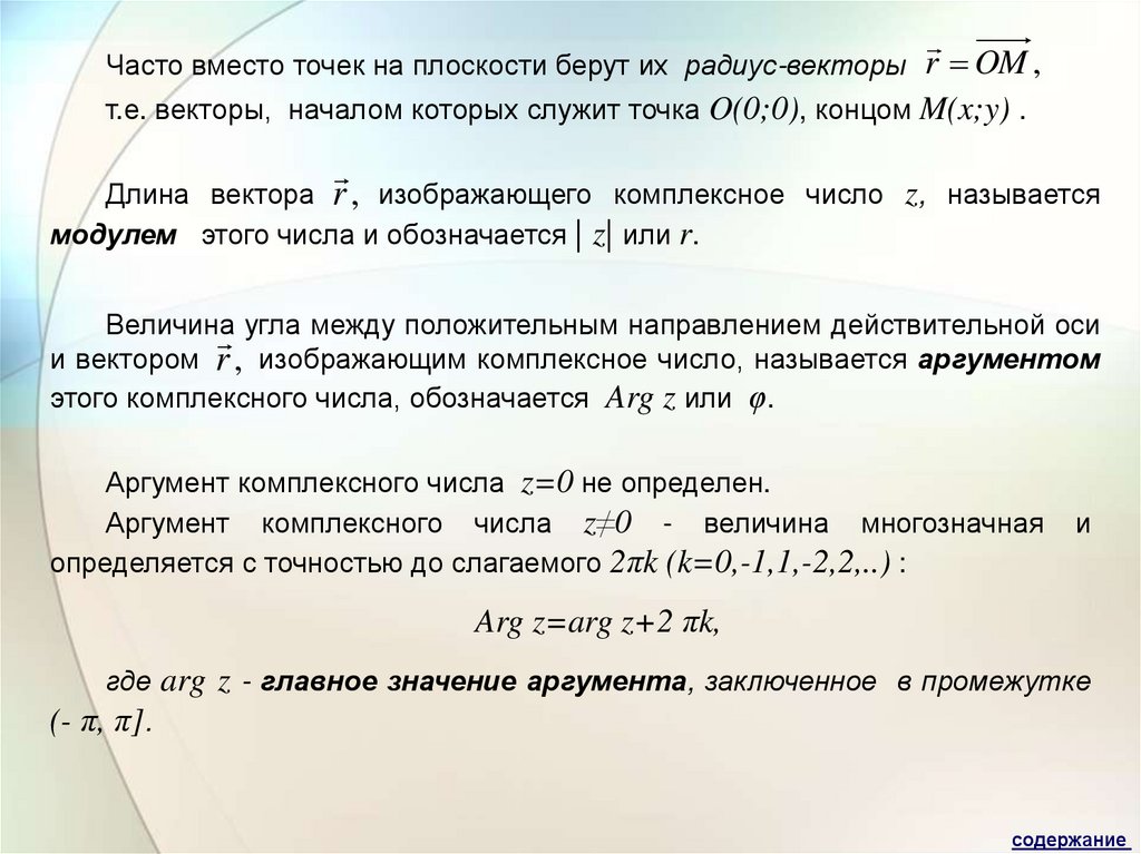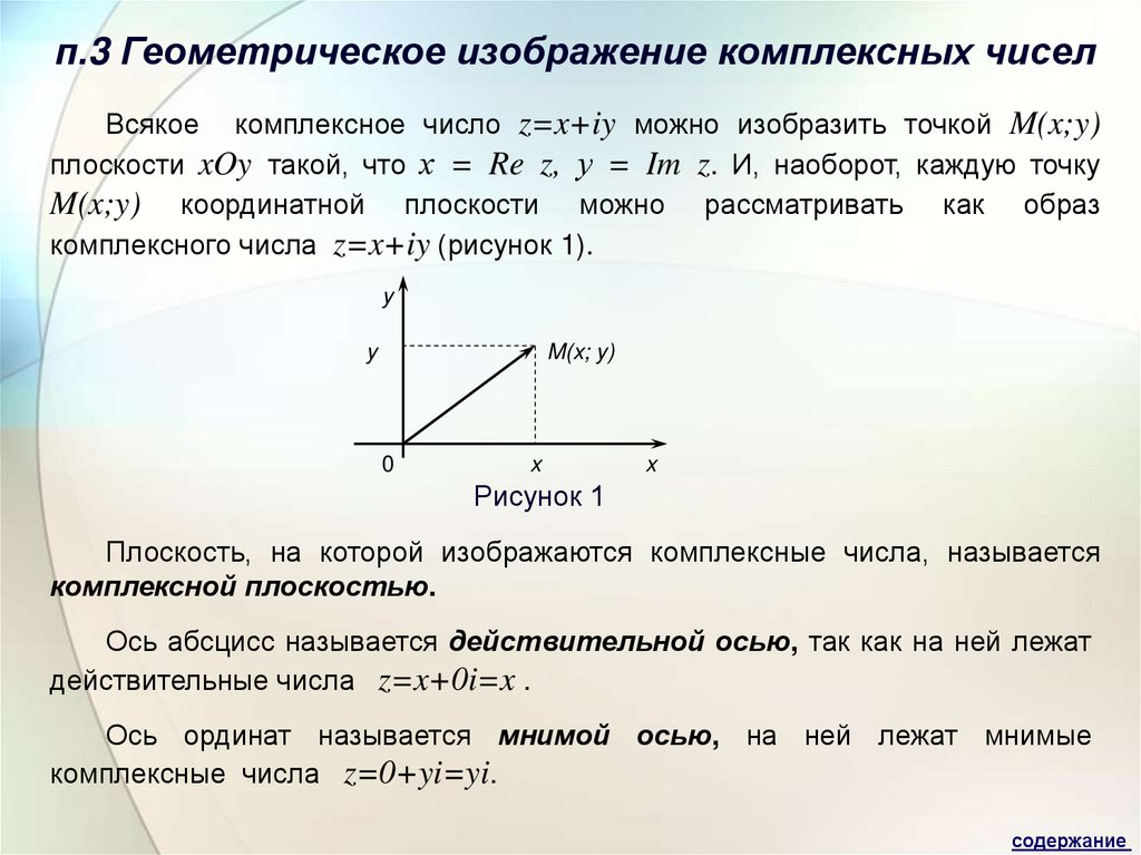 плоскости xOy такой, что х = Re z, у = Im z. И, наоборот, каждую точку