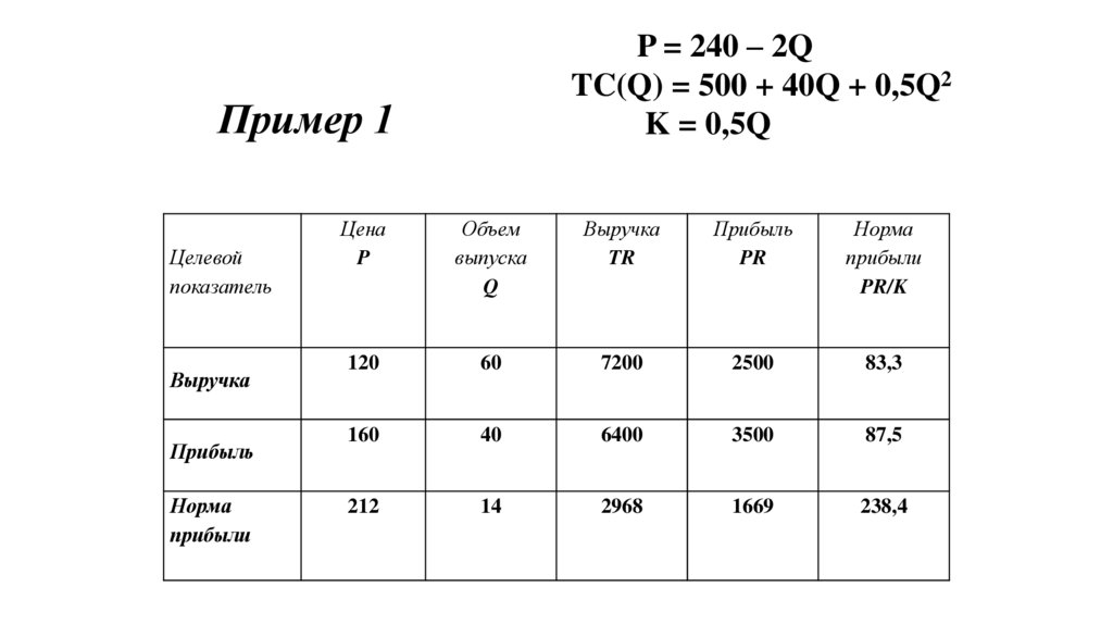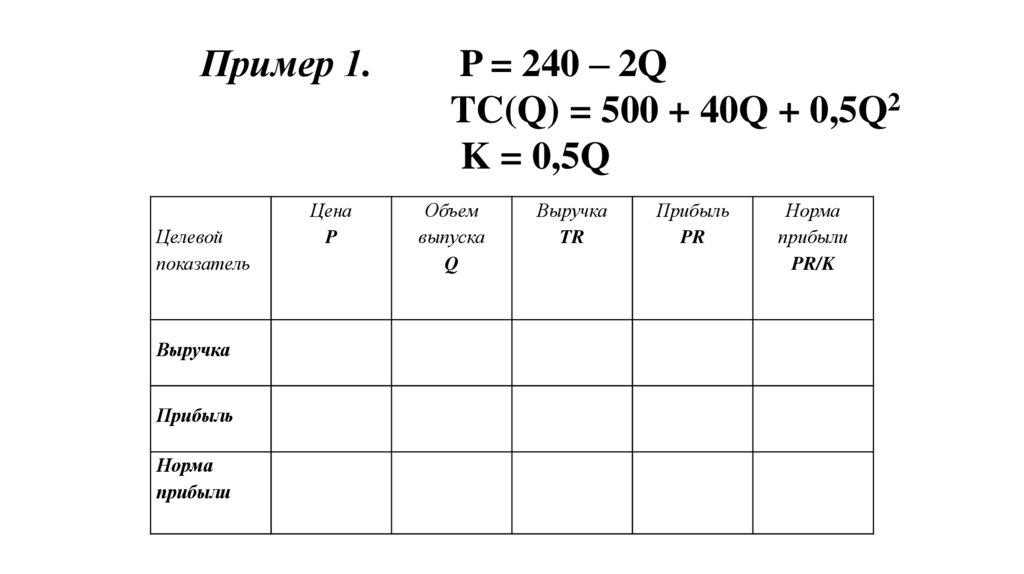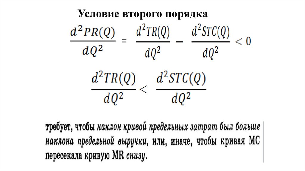PR(Q) = TR(Q) – STC(Q) → maxУсловие первого порядка