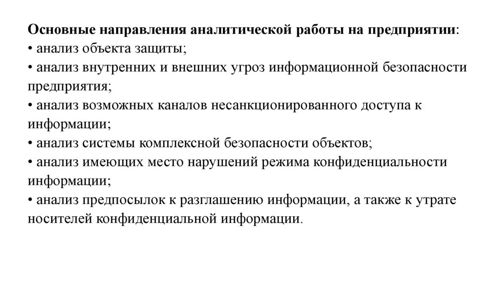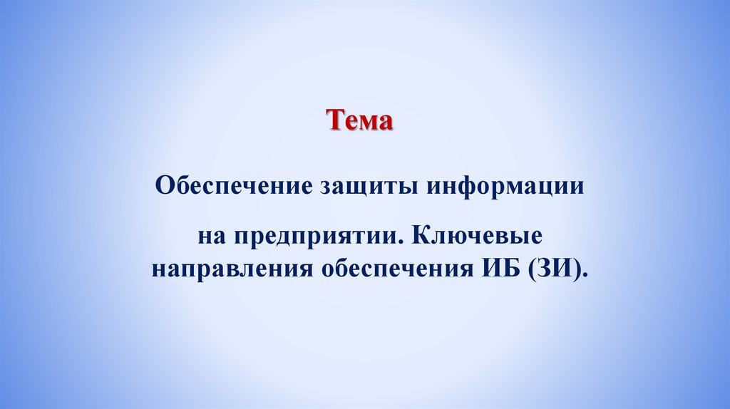 Обеспечение защиты информации на предприятии. Ключевые направления обеспечения ИБ (ЗИ)