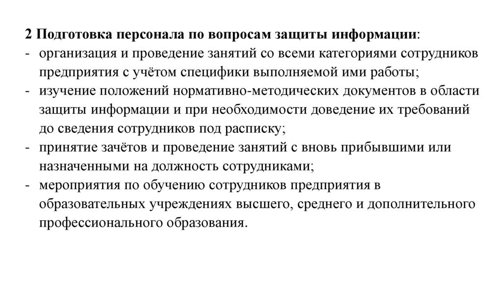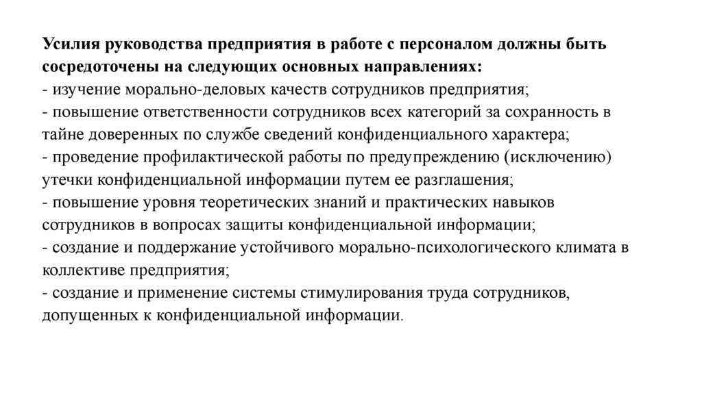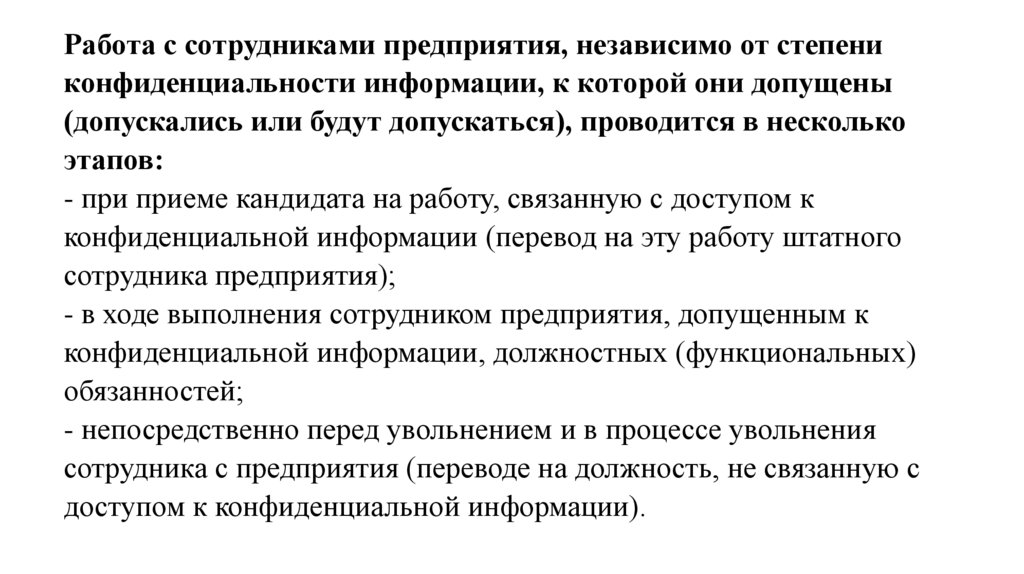 Работа с сотрудниками предприятия, независимо от степениконфиденциальности информации, к которой они допущены
