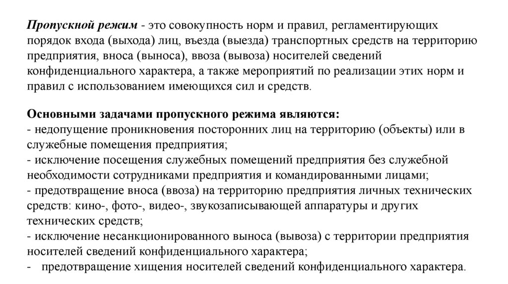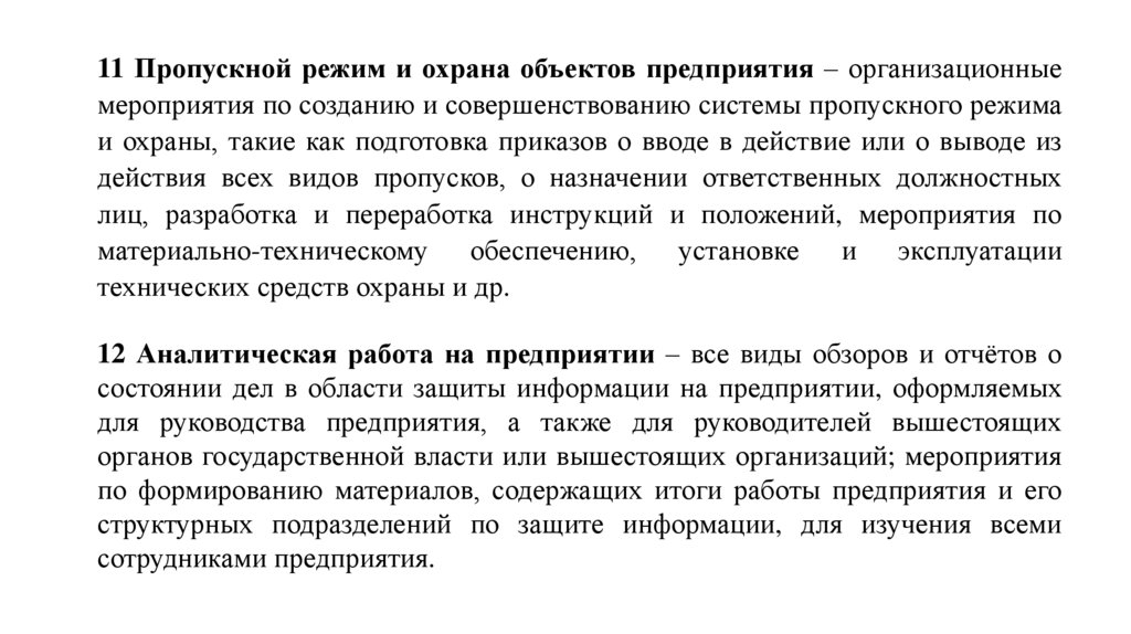 11 Пропускной режим и охрана объектов предприятия – организационныемероприятия по созданию и совершенствованию системы пропускного режима
