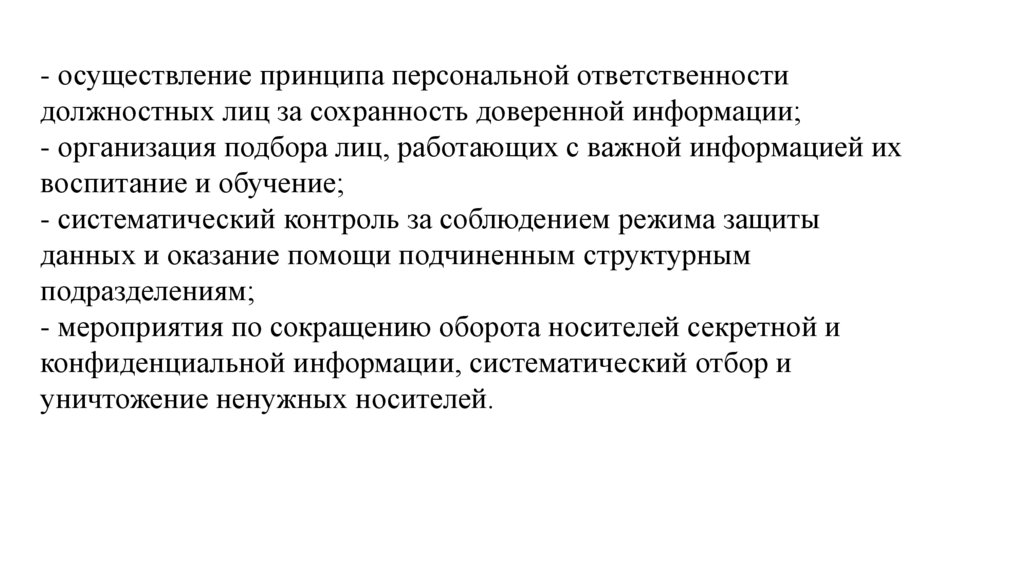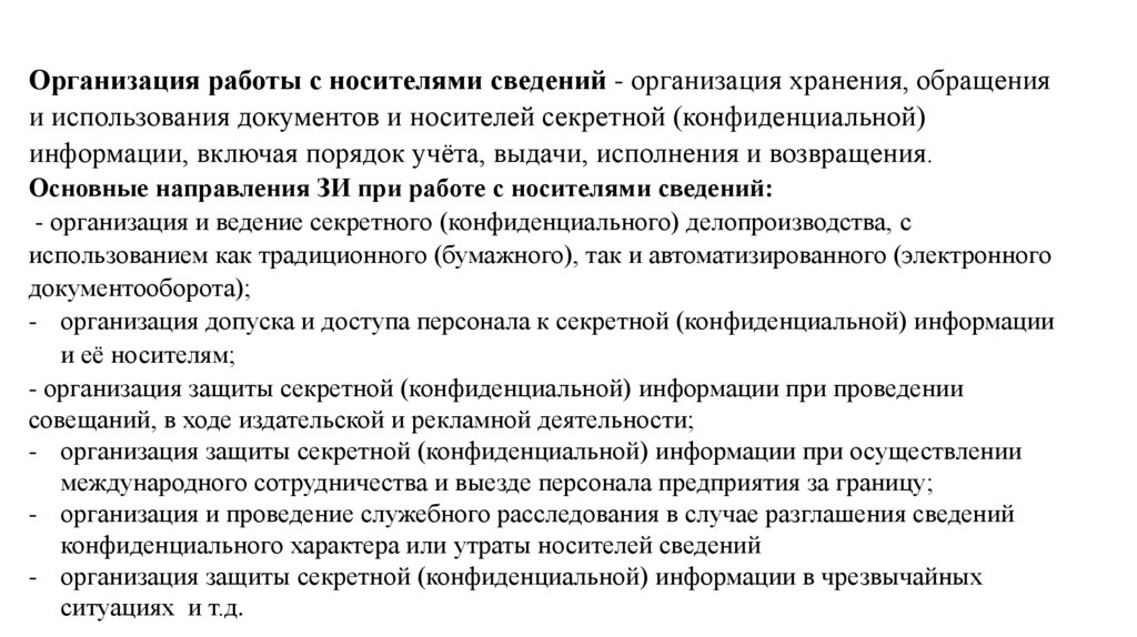 - вопросы учёта, хранения, размножения и уничтожения носителей