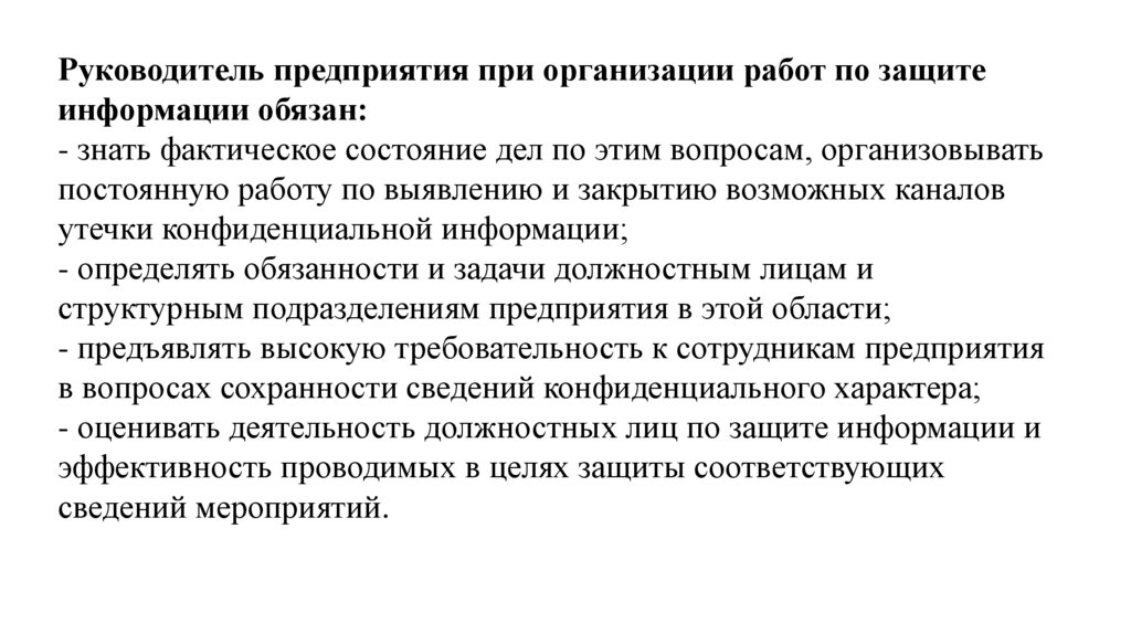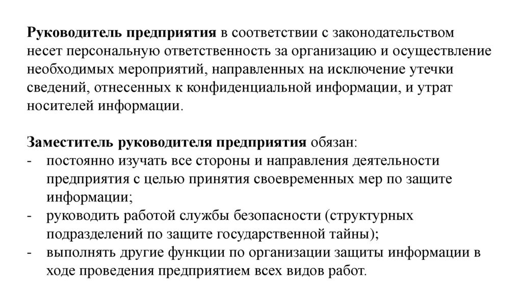 ведении которого находятся вопросы защиты конфиденциальной информации.